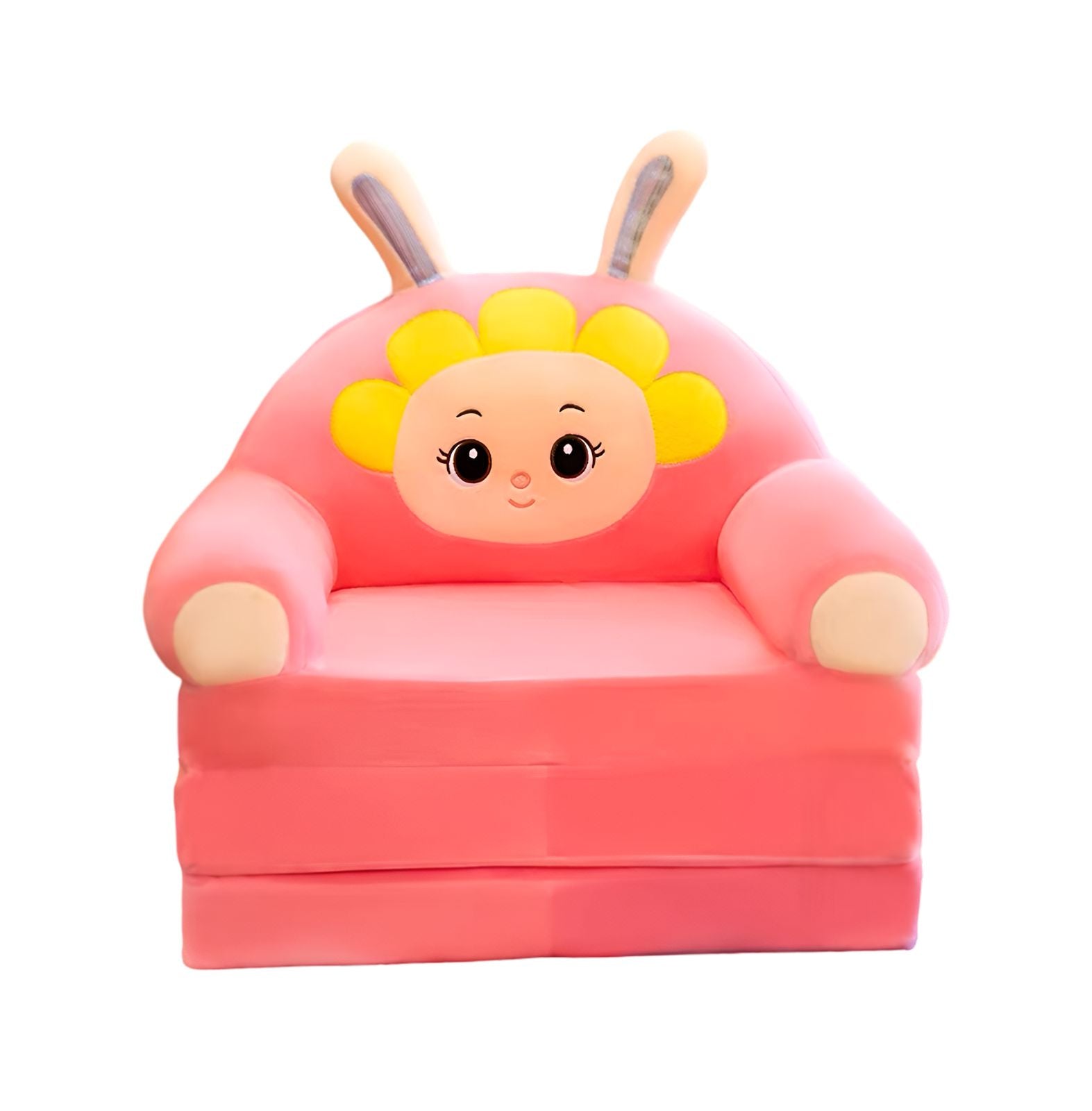 This soft, plush toddler sofa features an adorable design with a gentle face, soft arms, and a fold-out base that quickly transforms from a chair into a mini lounging mattress. Perfect for reading time, relaxing, watching cartoons, or nap-time comfort.